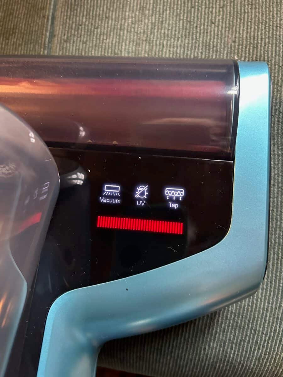 Another feature I noticed was the LED detection system. It calculates the number of dust mites in the fabric and will show red (dirty) or blue (clean).