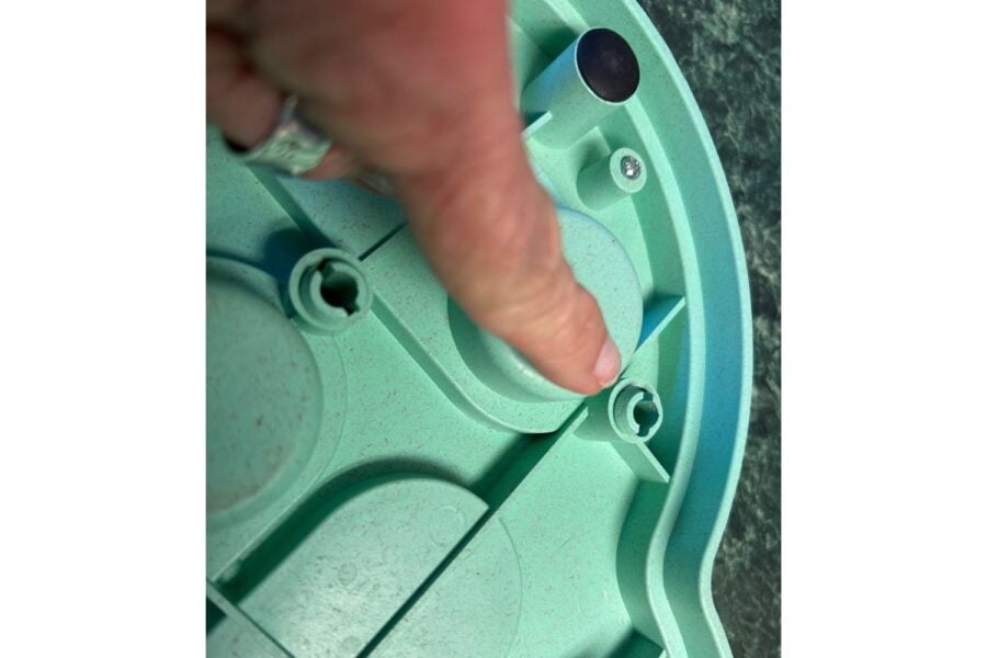 - If you need to simplify the puzzle more, some of the flippers are removable. Just flip the toy over and look for the fastener (see photo below); give it a squeeze to temporarily remove a flipper.